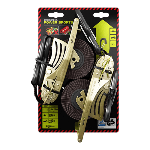 QUICKLOADER®QL800PS-2PK-AURetractable Power Sports 3,5M is the easiest and fastest tie-down for motorcycles, mopeds, ATVs and all the rest. Power Sports is a new kind of retractable tie-down that ensures safe transportation of loads. Transporting smaller vehicles has never been so easy.